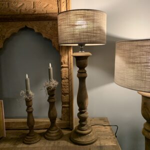 Teak Houten Baluster TafelLamp Rond L