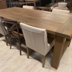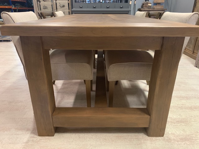 Zware eiken eettafel vlekbestendig gebeitst in de kleur oud eiken.