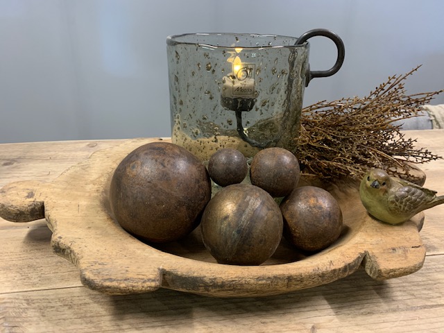 Metalen roest ballen set van 5 verschillende maten diameter ca 4,5,6,8,10cm